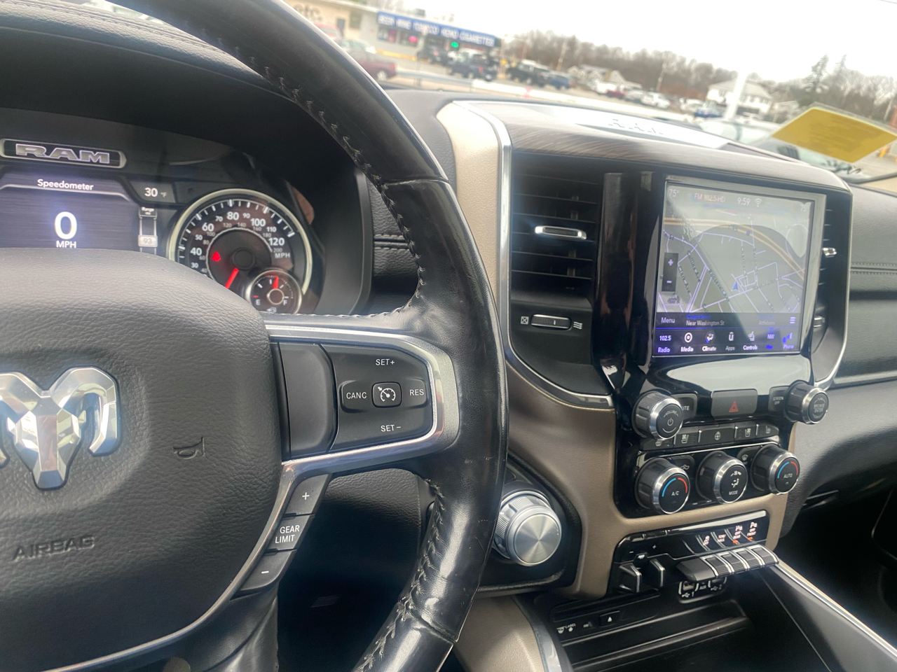 Inside, you'll find a high-tech infotainment system with a large touchscreen display, perfect for blasting your favorite tunes through the premium sound system. Stay connected on the go with mobile hotspot internet access, and keep comfortable with dual-zone automatic air conditioning. The safety features on this RAM 1500 are top-notch, with multiple airbags, a backup camera, and tire pressure monitoring system to keep you secure on the road.