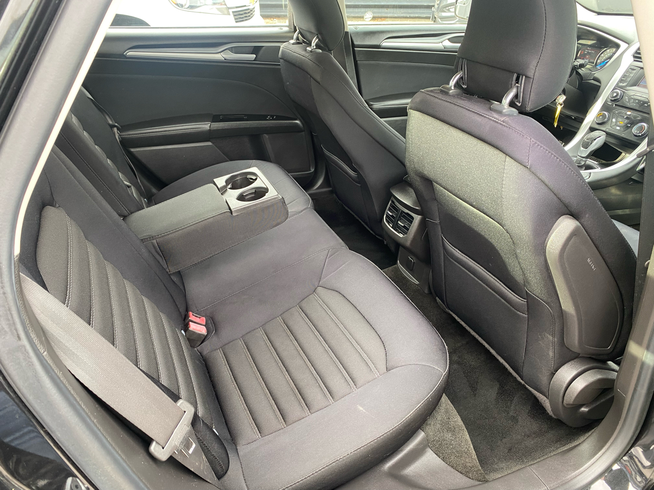 Cruise around town in style and comfort with this sleek 2014 Ford Fusion! This black beauty is powered by a 2.5L iVCT engine, providing a perfect blend of power and efficiency for all your driving adventures. With front-wheel drive and a 3.07 axle ratio, you'll enjoy a smooth and responsive ride every time you hit the road.Step inside the spacious cabin and sink into the cozy cloth seats that offer both comfort and support. Whether you're running errands around town or embarking on a road trip, the 60-40 folding rear seats provide versatility for all your cargo needs.