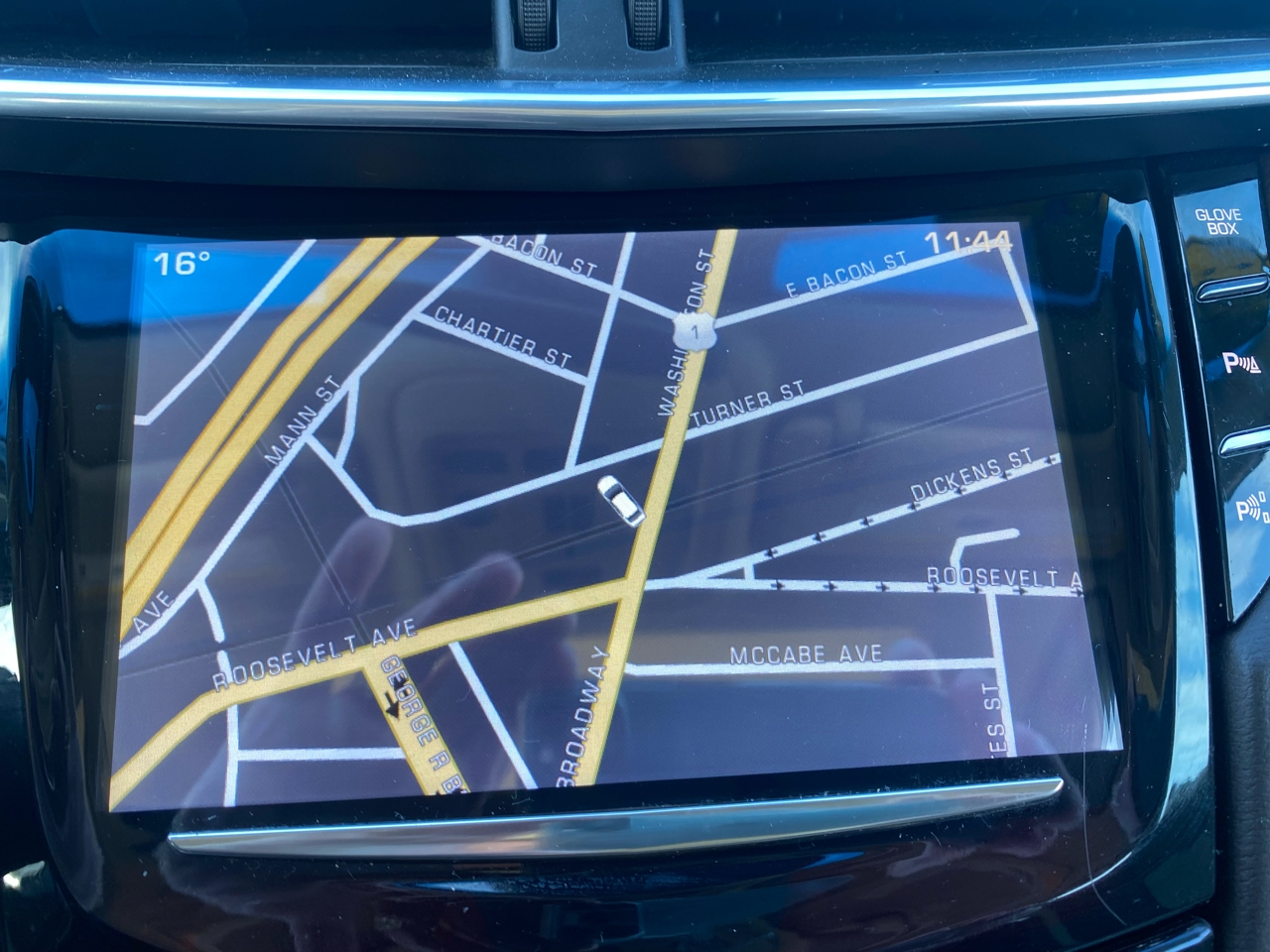 - CUE Information and Media Control System 8" display, featuring touch response, haptic feedback, gesture recognition, proximity sensing, articulating storage door/bin, clock display and compass feature